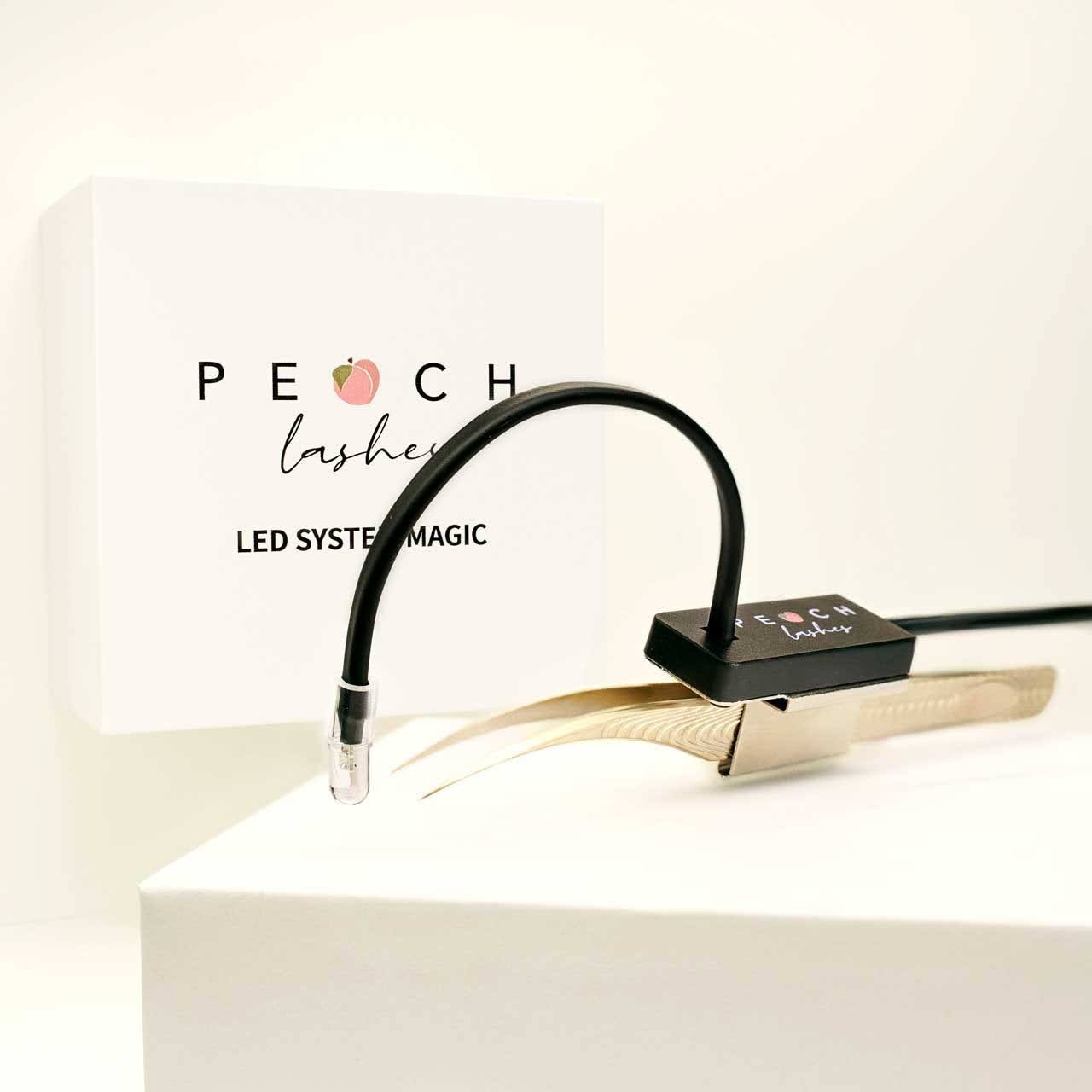 Der PEACH LED-Aufsatz wurde speziell für professionelle Wimpernstylist*innen entwickelt, die mit LED-Systemen auf dem neuesten Stand arbeiten möchten. Direkt an der Pinzette befestigt, liefert er weiches violettes Licht, das genau dort aushärtet, wo du arbeitest – ohne zu blenden, ohne die Haut zu reizen