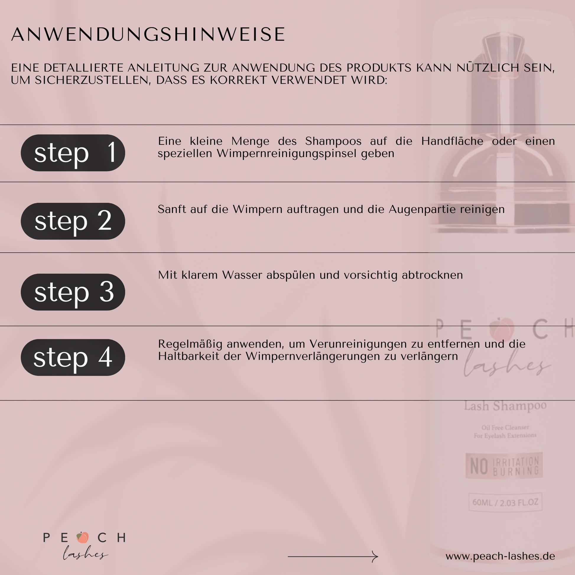 Ideal für professionelle Stylisten und für den Heimgebrauch, garantiert der "Peach Lashes Reinigungsschaum" eine sanfte, aber gründliche Reinigung, die die Gesundheit und Schönheit Ihrer Wimpern erhält.